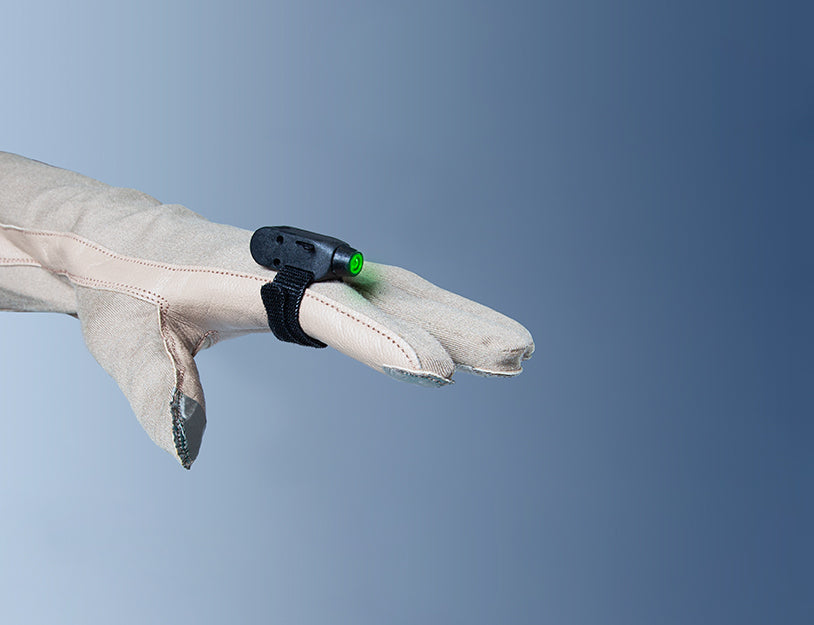 The MK1 Finger Lights provides easy-to-use, one-handed operation. They attach to your index finger with hook-and-loop and can be turned on and off by pressing its switch with your thumb. It provides focused short-range lighting.